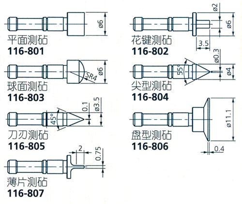 • V型测砧和锥型探针成对匹配可用于螺纹测量。