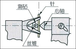 • 带有中心线凹槽的V型测砧。适用于单针法测量丝锥的中径。