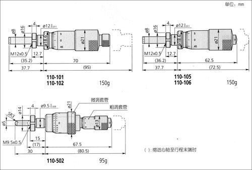*0.025mm/rev/.001"/rev(微调):110-502,110-504