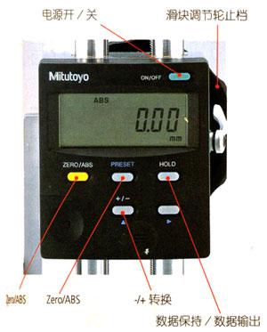 调零、ABS/INC测量模式转换、预置、测头针尖直径补偿、-/+转换、自动电源开/关、数据保持、数据输出、英制/公制转换(英制/公制型)