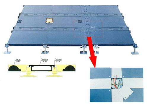 网络地板系列采用优质冷轧钢板,经拉伸后点焊成形,外表经磷化后进行喷塑处理,内腔填充发泡水泥,四角带有角锁孔。其优点在于:最低板面高度可为5cm,表面可根据使用要求任意 添加固定线槽,布线更具灵活性,可以将强、弱电分开隔离,便于检修,节约大楼空间,更体现出地板的功能性。