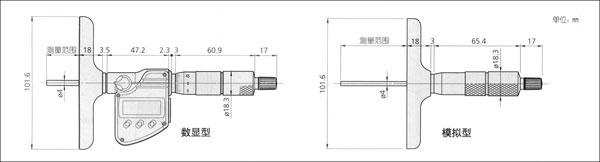 | 0-25mm | 229-101 | 63.5×16mm | 带有1个测杆 |