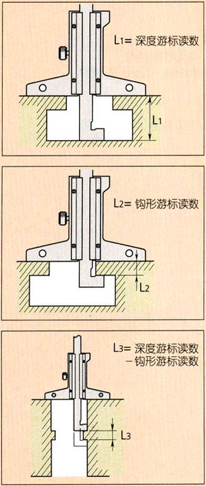 • 主尺的顶端为钩型,不仅可进行标准的深度测量,还可对凸出部分或洞口外进行深度和厚度测量。