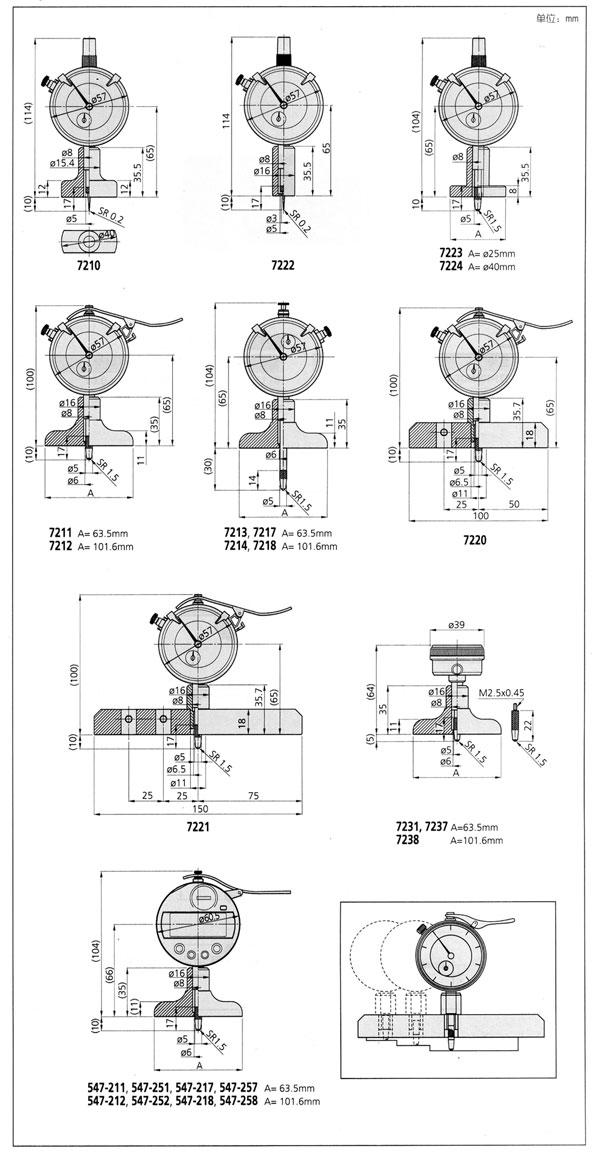 | 0-200mm | 7231 | 5mm | ±15μm | 5个(10,20,30,30,100mm) | 63.5×16mm,5μm |