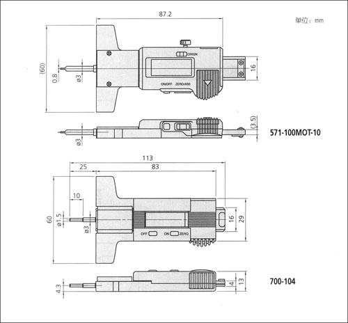 分辨率:0.01mm或.0005"/0.01mm(571系列)