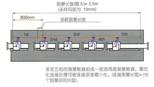 • 使用多联测量功能可测量长达3.5米工件的直线度(由于扫描数据的不确定性,导致测量精度降低)。