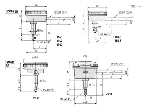 • 背置活塞型指针式量表适于安装在水平机器工作台或检测夹具上,或用于普通指针式千分表不易读数的狭小空间内。