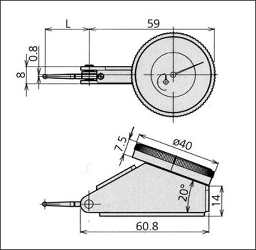 • 表盘倾斜向上,可以在测量者一侧读数。当在大型工件的侧面或在高工作台进行测量时使用非常方便。