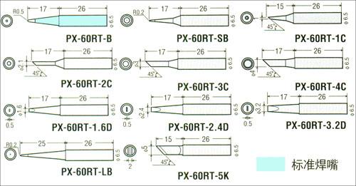 与RX-701/711系列共同使用M型焊嘴(PX-60RT系列)。焊嘴丰富,种类繁多、价格合理、高通用性达到降低成本效果。