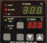 自由设定温度从室温到500℃的温度,温度分上下两段显示。设定温度与焊嘴温度一目了然。PID控制实现高精度温度管理。亦可以P方式单独控制温度(PAT.P)。