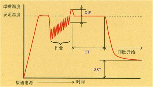 升温后、当需要休息或某段时间不使用时,可将焊嘴温度降至某一设定温度。