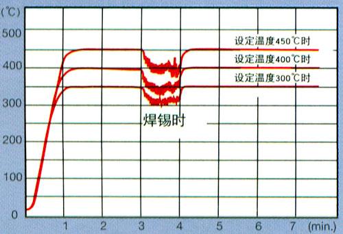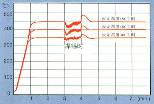 从室温到500度的温度自由设定。设定温度与焊嘴的温度上下两段显示,一目了然。PID控制,实施高精度温度管理。根据需要,亦可单独实行P控制。(PAT.P)