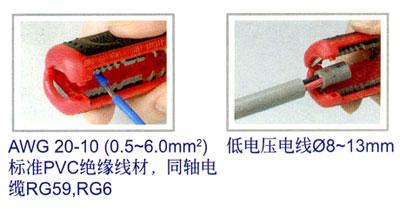 • 剥线范围:AWG20-10(0.5-6.0mm² )标准PVC绝缘线材,同轴电缆RG59,RG6,低电压电线Ø8~13mm