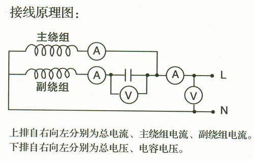 ■ 显示方式:6个窗口同时显示总电源、主绕组电源、副绕组电流;总电压、电容电压、频率、功率、功率因数(功能键切换显示)