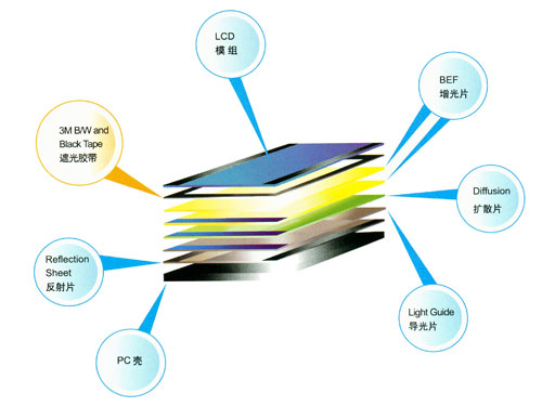 在彩屏背光源模组上,3M一直在国际市场上战局领导地位。除为广大客户认识的增亮膜外,3M亦提供多种厚度的双面胶带,黑白/黑黑遮光胶带,G-Sheet抗震密封垫及背光模组的保护膜。